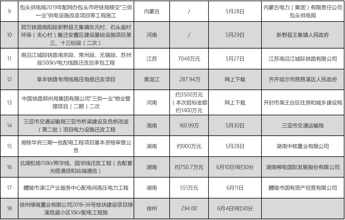 招标信息丨电力工程项目(5月03期)